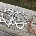 These Artisan-made large hoop earrings in a Mandala inspired style are available in copper or sterling silver. They have a smooth polished finish accented with fine silver balls on the tips. 2" Hoops