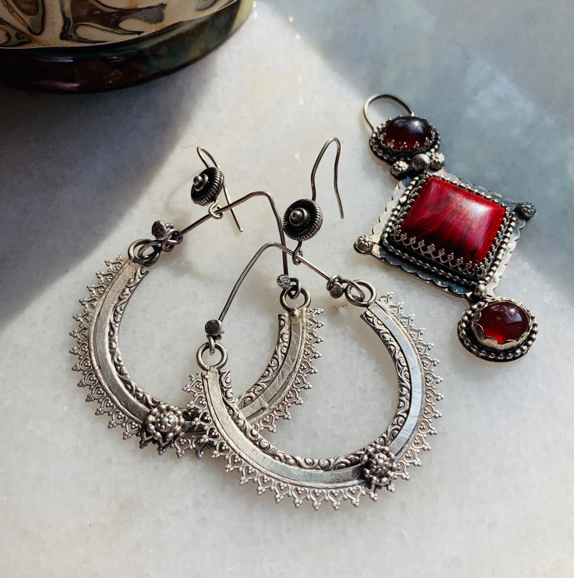 Elegant Sterling Silver crescent Earrings with Intricate Filigree Design