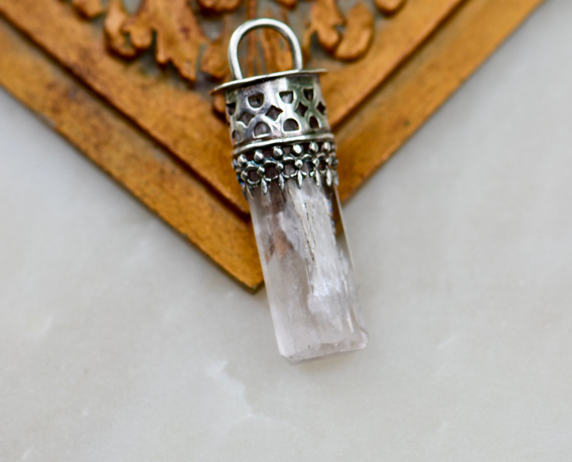 Elegant Sterling Silver Encased Amethyst Point Pendant