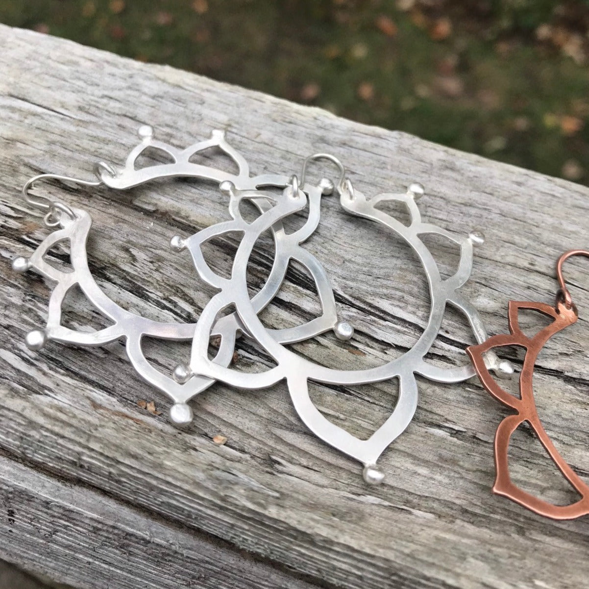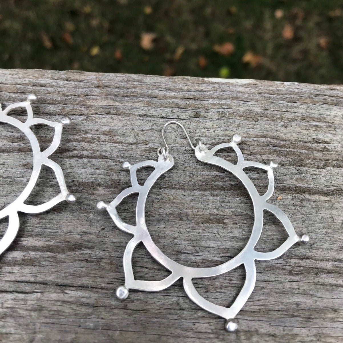 Introducing our Handcrafted Sterling Silver Sunburst Earrings, created by artisan Deirdra based on a design by jewelry artist Leslie Villarreal. These exquisite earrings feature a unique sunburst design, meticulously crafted from high-quality sterling silver. The intricate openwork and delicate detailing highlight the skill and artistry imparted through Leslie Villarreal's influence, making each pair a wearable piece of art.