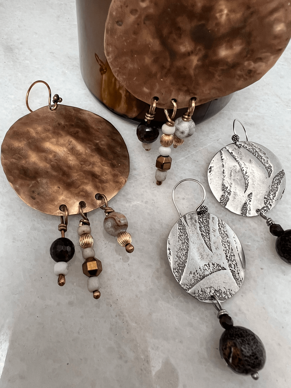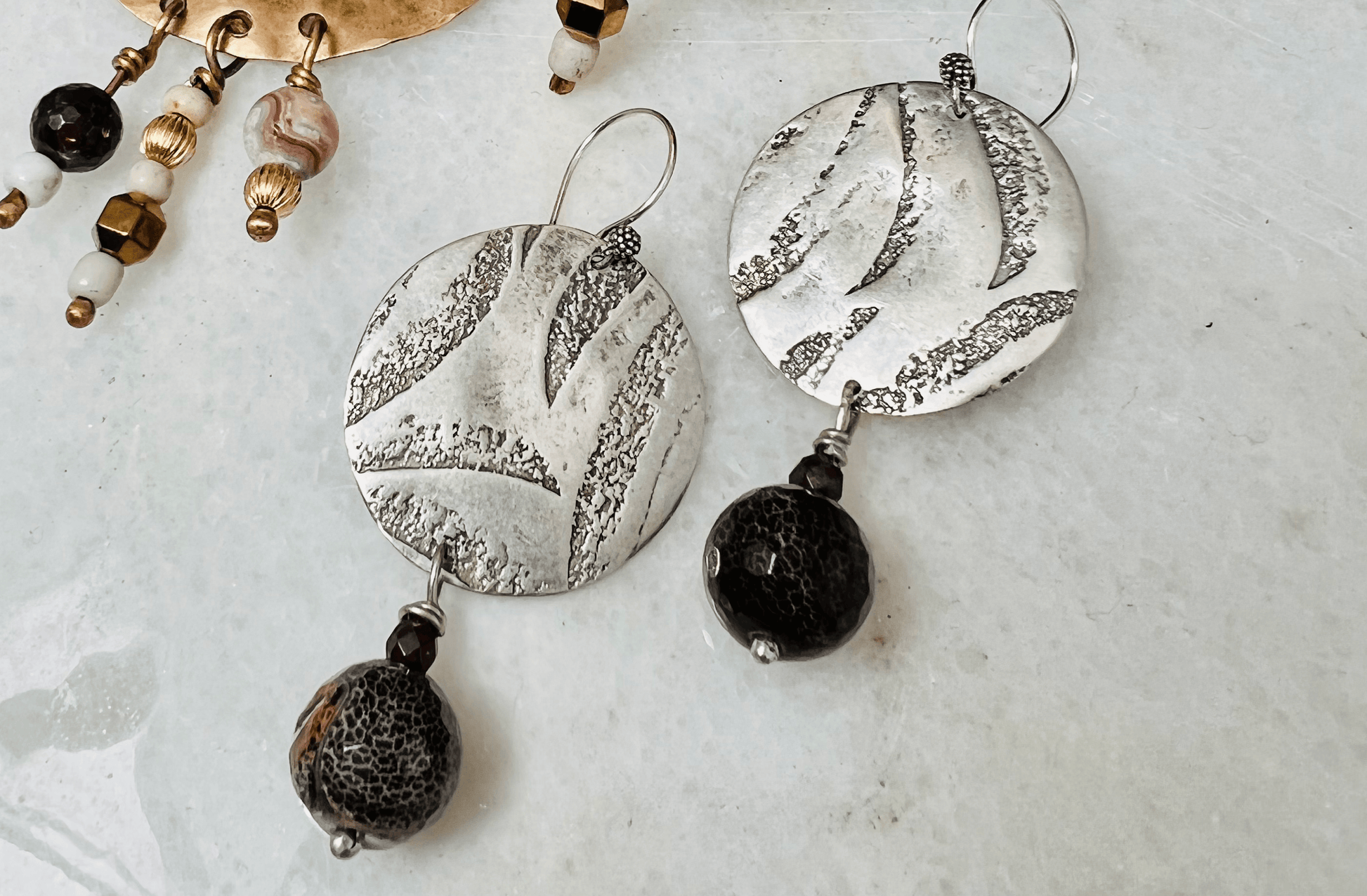 Sterling Elegance: Textured Silver Earrings with Agate Drops