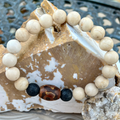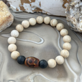 White Jasper Stone Bracelet with Agate and Black Lava Bead Accents